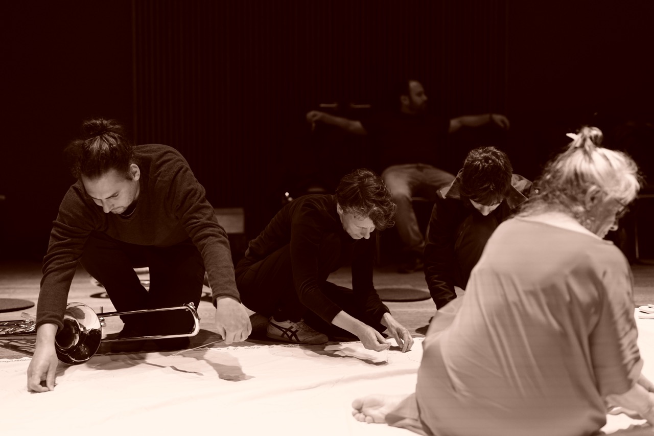 (In)discrets ist eine Konzert-Installation, eine immersive Träumerei über die Fragilität und Verletzbarkeit der Erdböden. Die Komposition für Ensemble und Elektronik entfaltet sich im Rhythmus der Gesten der Stickerin und lädt ein zu einem Moment des Zuhörens und der Aufmerksamkeit.